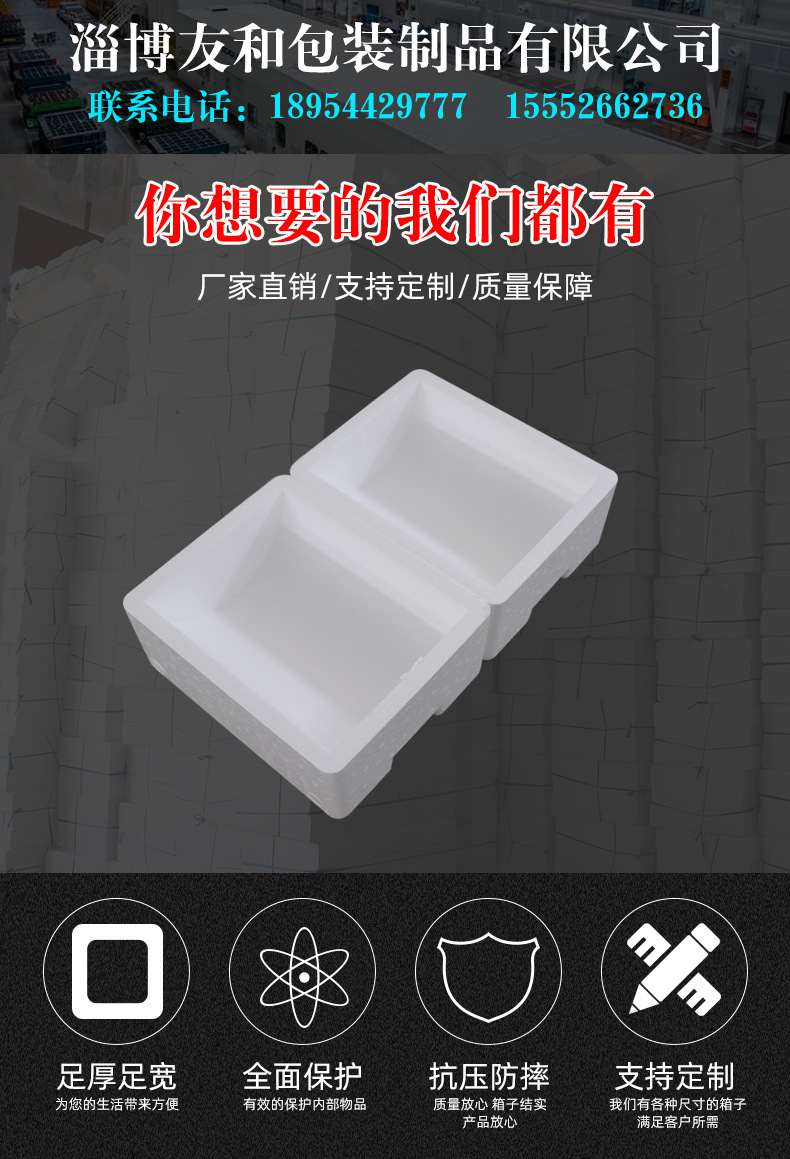 介紹參數圖冊 ????淄博友和包裝制品有限公司是專業的山東泡沫包裝箱加工廠家,本廠主要產品有:泡沫包裝箱,泡沫保鮮箱,水果蔬菜泡沫包裝箱,水果蔬菜泡沫保鮮箱,瓷磚泡沫包裝箱等,產品暢銷全國,深受用戶好評。泡沫包裝定做可以聯系我們網站 http://m.ny4455.cn/ 上電話,我們會第一時間跟您聯系。 上一篇小藥盒泡沫包裝箱 下一篇沒有了!